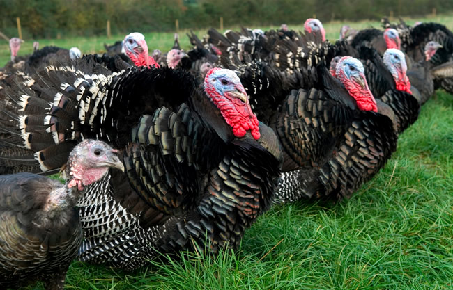 Traditionally produced free range fresh bronze turkeys finished on oats for better flavour. All birds are well hung and hand finished for a superb product.